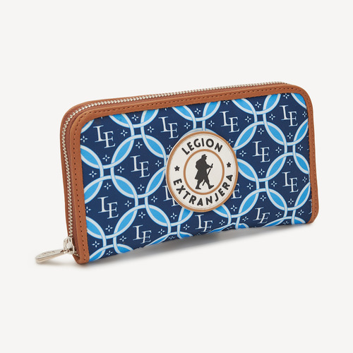 Billetera confeccionada y desarrollada especialmente para Legion Extranjera diseño damero. Lleva logo de goma en el centro delantero. Tiene un único acceso a través de cierre dorado con tiracierre LE. El interior se encuentra confeccionado de simil cuero chocolate y tiene espacio para varias tarjetas y un bolsillo principal con cierre. Tiene el tamaño justo para usar con cualquier bolso o cartera.