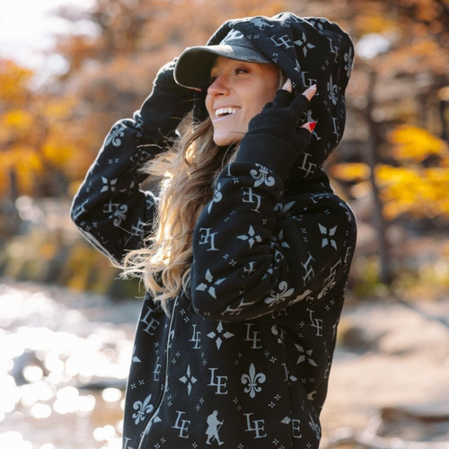 Hoodie con cierre desmontable en el centro delantero. Lleva capucha de tela base forrada con tela de algodón lisa a tono. Puños y cintura de ribb a tono. Estampa total unic desarrollada especialmente por Legión Extranjera en un tono sobre tono, hecha con serigrafía. La serigrafía es un proceso de estampa artesanal, que se realiza manualmente, es por ello, que puede llegar a sufrir algunas diferencias en la estampa. La modelo utiliza talle M.